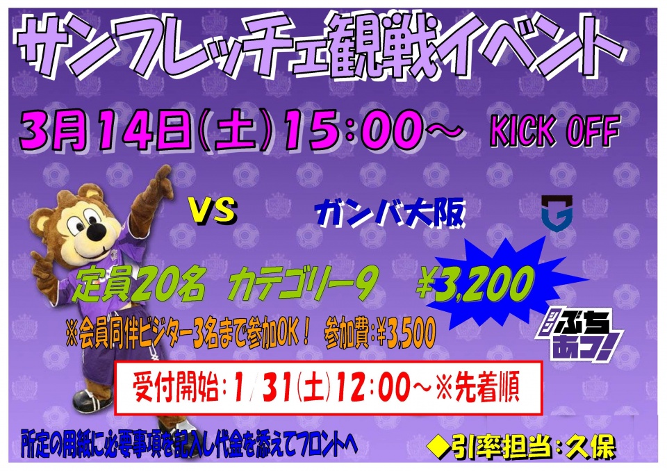 さて、今回は先週から開幕したJリーグ、サンフレッチェ広島観戦イベントのお知らせとなります🐻