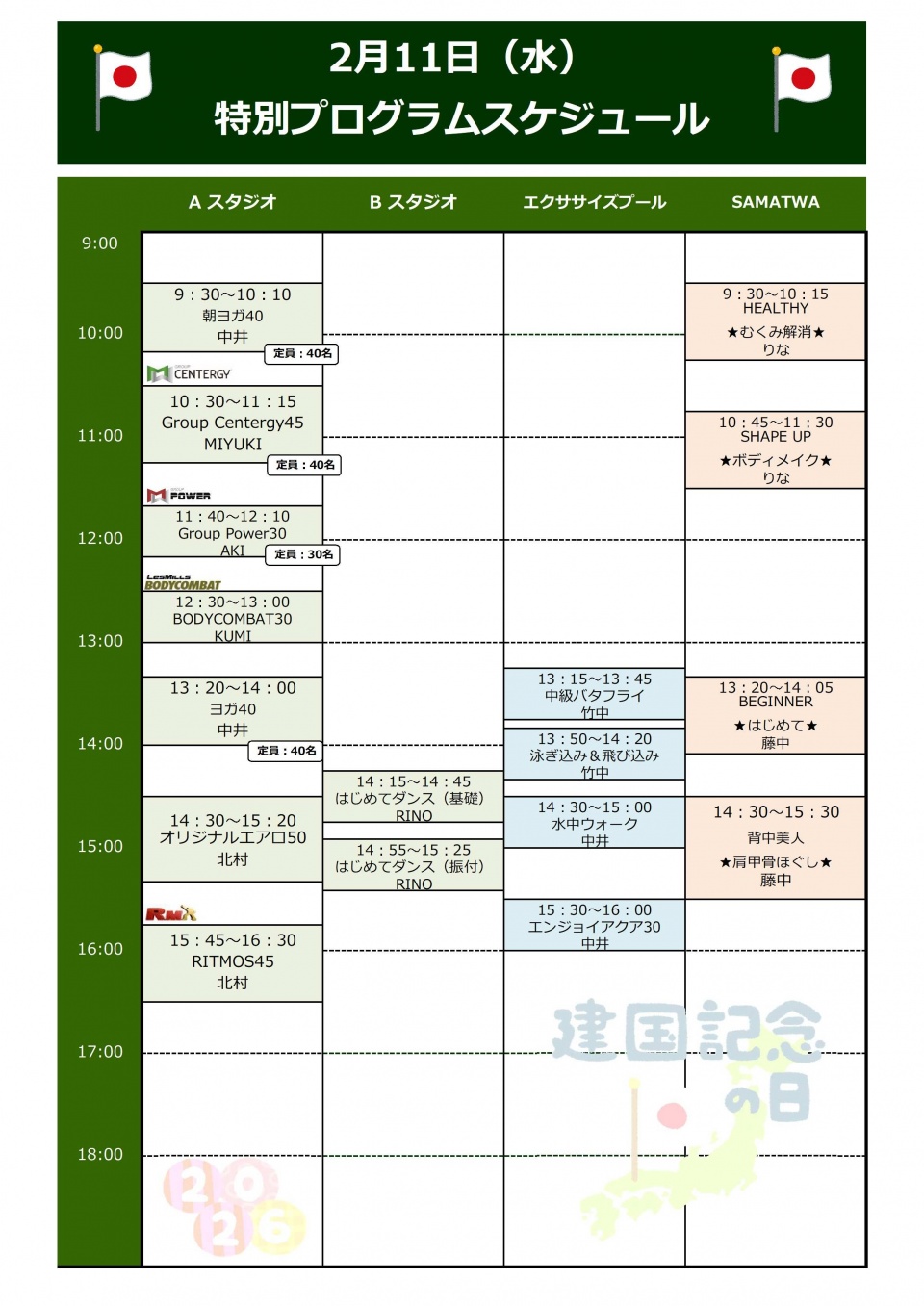 ★2/11(水・祝)特別プログラムスケジュール★