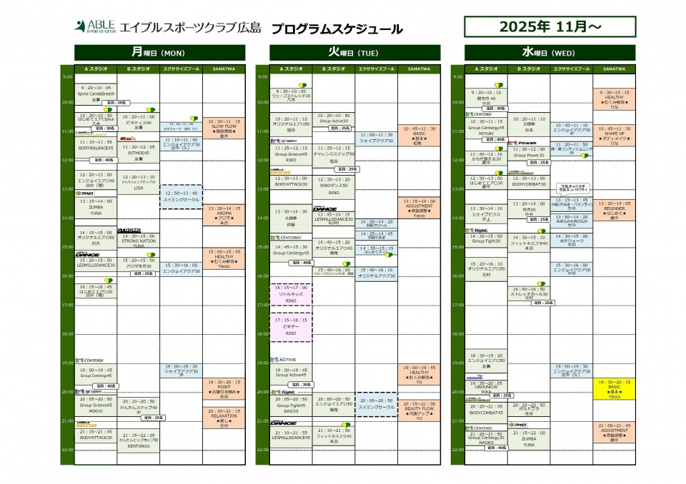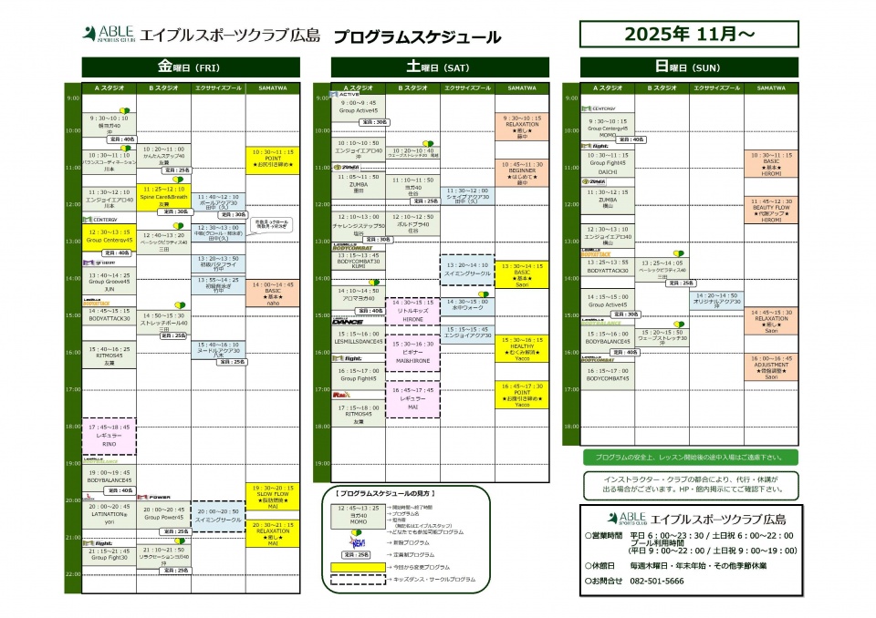 11月~プログラムスケジュール
