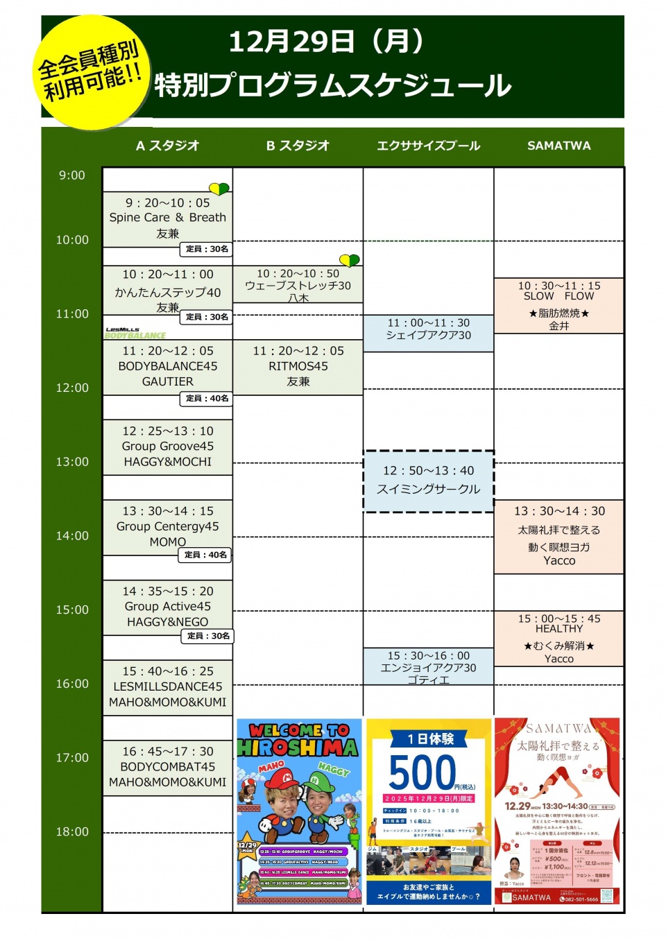 12/29(月)は特別プログラム(^O^)/°˖✧