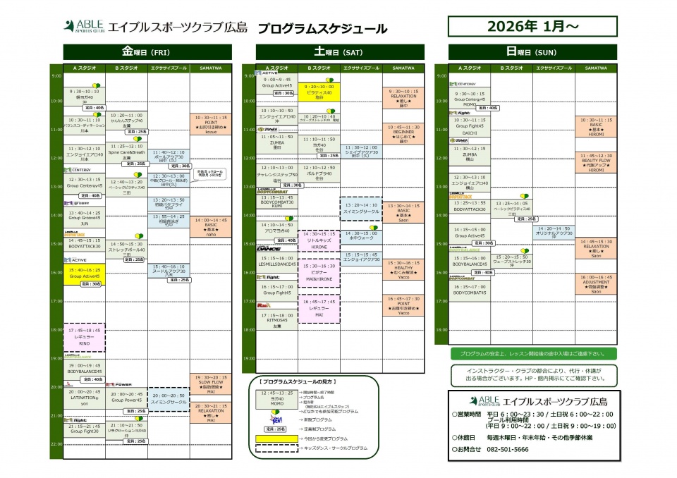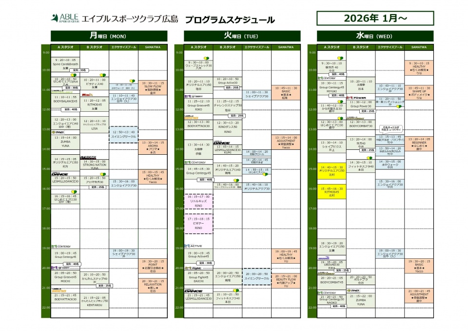 1月~プログラムスケジュール