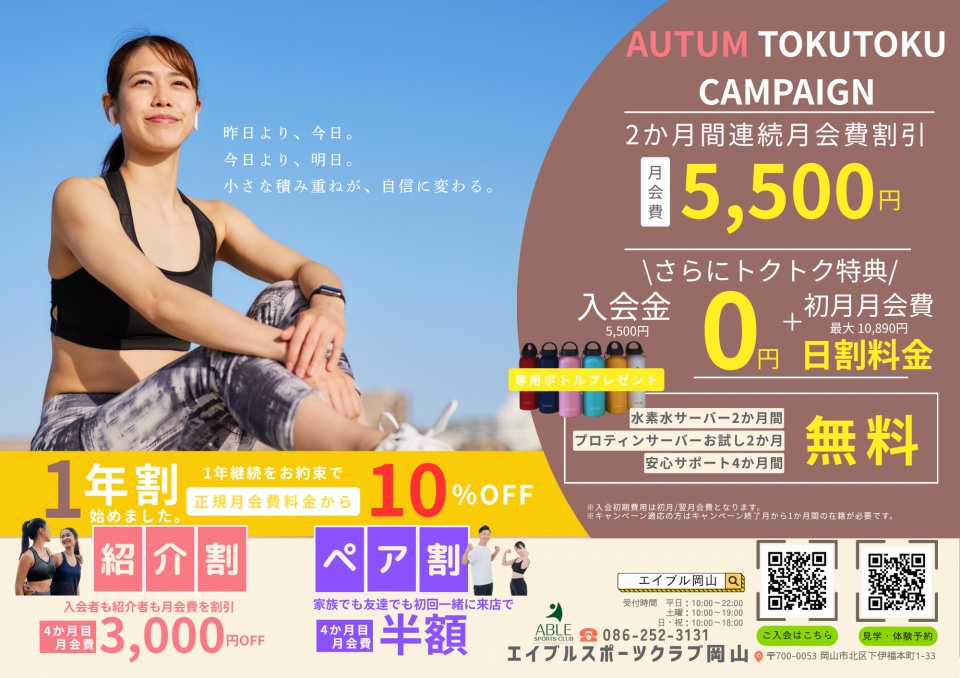 詳しくはこちら⇒ エイブルスポーツクラブ岡山|岡山最大級の超大型フィットネスジム