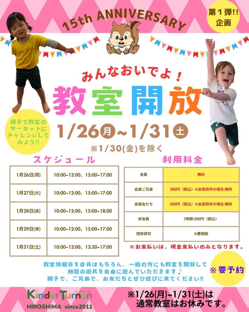 キンダー教室を知っていただく第1弾として教室開放を実施します♪